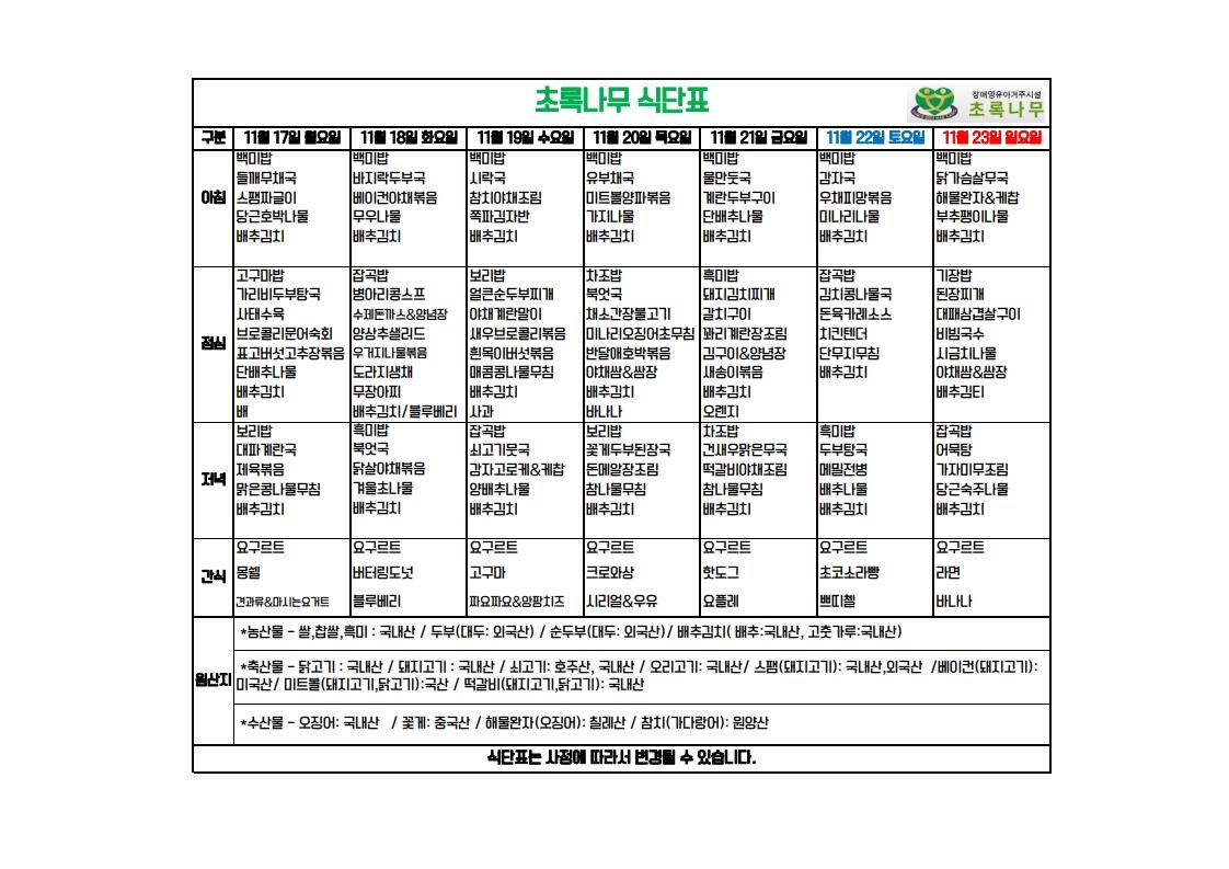 2025년 11월 3주 식단표