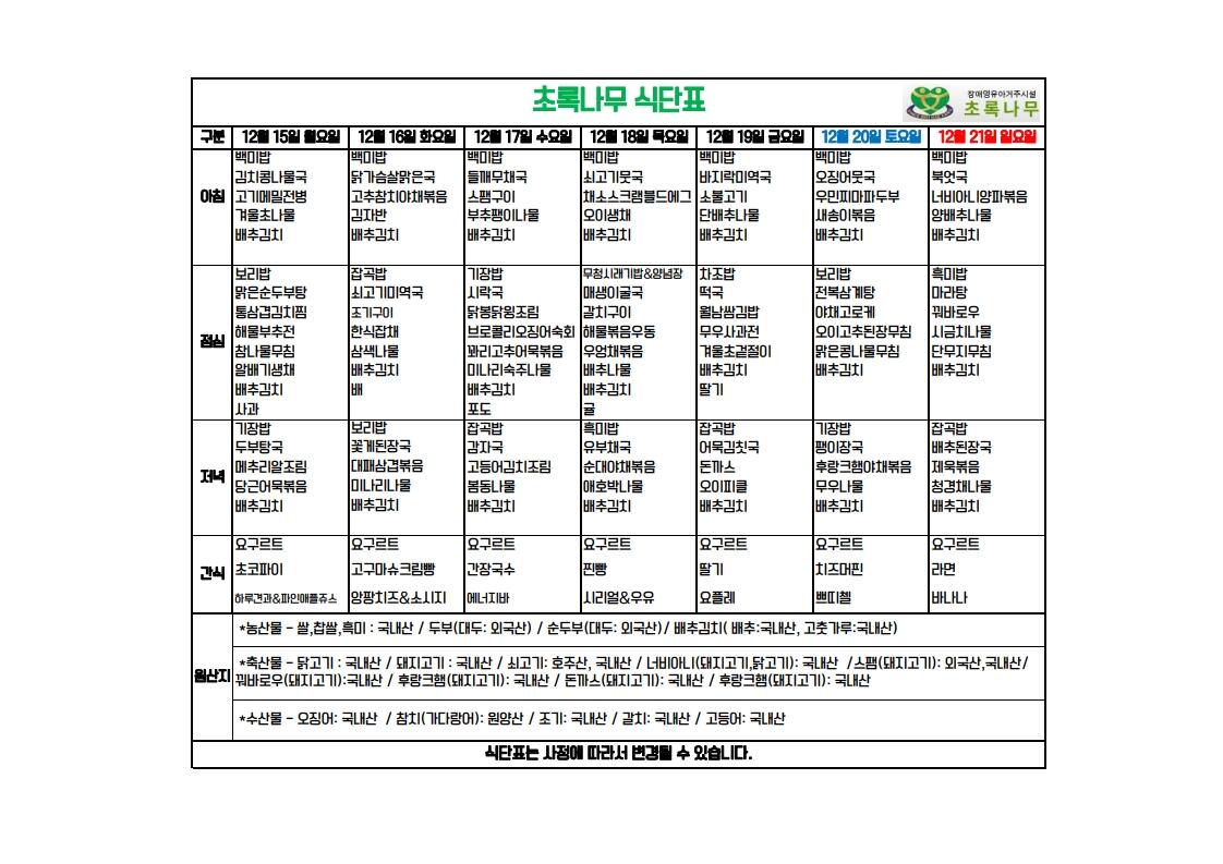 2025년 12월 3주 식단표